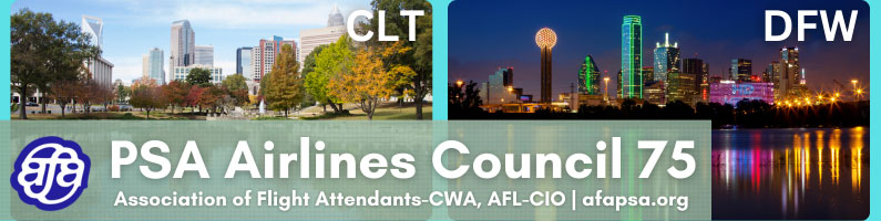 Contact Us AFA at PSA Airlines Hotline 844-423-2232 LOCAL & MEC OFFICERS: Local Council 54 (DCA) Officers – 844-423-2232 Ext 1 Local Council 57 (DAY & PHL) Officers – 844-423-2232 Ext 2 Local Council 75 (CLT & DFW) Officers – 844-423-2232 Ext 2 Master Executive Council Officers – 844-423-2232 Ext 4 COMMITTEES: Air Safety, Health and Security Committee – 844-423-2232 Ext 6 Benefits Committee Communications Committee Employee Assistance Programs & Professional Standards Committee – 844-423-2232 Ext 5 Government Affairs Committee Grievance CommitteeMeeting Representation Requests 844-423-2232 Ext 0Meeting Representation Requests 844-423-2232 Ext 0 Hotel Committee – 844-423-2232 Ext 702 Membership Services CommitteeContact AFA-CWA INTERNATIONAL MEMBERSHIP SERVICES OfficeBy Phone: 844-232-2228 Ext. 3OnlineHub Help Payroll Education Committee Reserve Committee – 844-423-2232 Ext 701 Scheduling Committee – 844-423-2232 Ext 700
